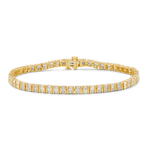 Add a classic tennis bracelet for an elegant finishing touch. Delicate designs on gold and white gold, set with exquisite, sparkling diamonds.