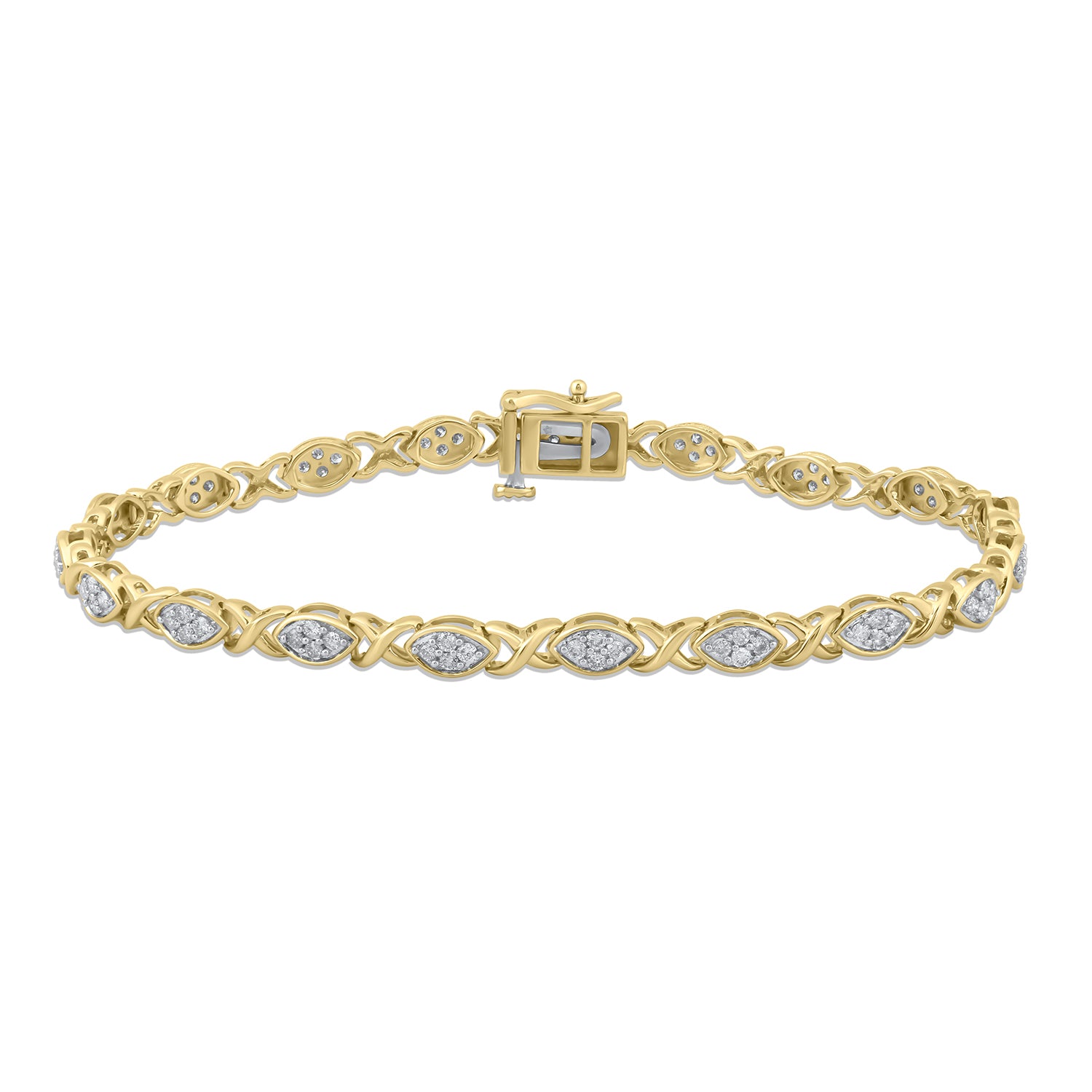 9kt yellow gold 1ct diamond marquise & X design linked bracelet