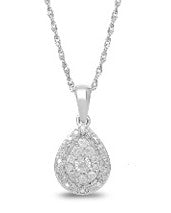 Silver 0.20ct Diamond Cluster Pear Shaped Pendant