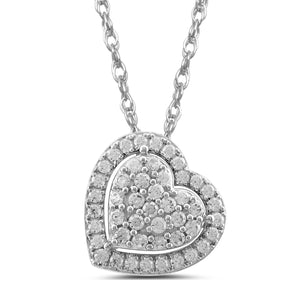 Silver 0.33ct Diamond Cluster Heart Shaped Pendant