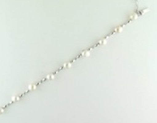 Sterling Silver Round Pearl & White Sapphire Bracelet