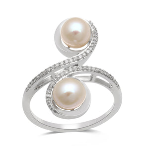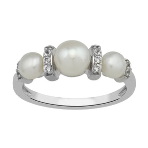 9k White Gold 0.10ct Diamond & Pearl Ring